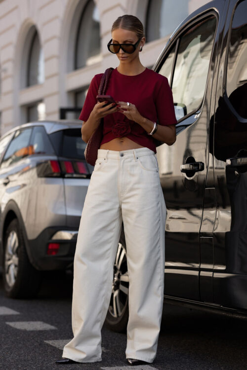 The Rose blouse exudes femininity and elegance. This extraordinary blouse with long flared sleeves and a round neckline will be a real gem in your wardrobe. The rose application on the front creates a unique model that will be a…