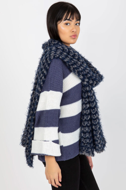 Soft and cozy scarf with a smooth texture, made of high-quality acrylic, which effectively protects against cold and ensures comfortable wearing on winter days. The model is 186 cm long and 33 cm wide, allowing for free wrapping around the…