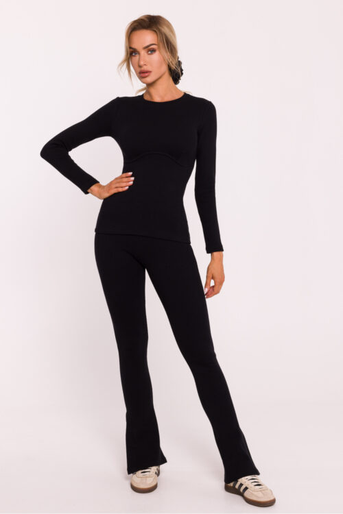 The blouse with long, narrow sleeves, made of ribbed cotton knit fabric, perfectly adapts to the figure, emphasizing its shapes. Maintained in a corset style, it combines classic elegance with modern design, giving the whole a feminine and sensual character.…