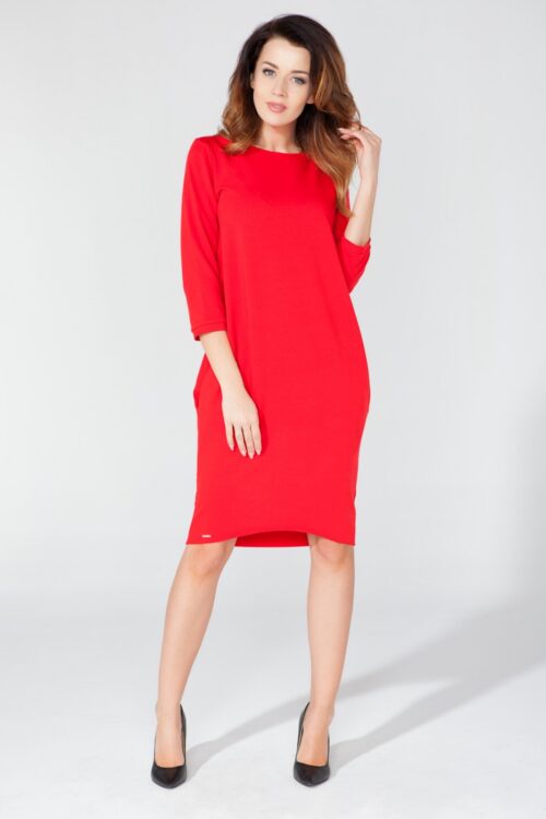 Elegant knitted dress with pockets on hips. A tuba cut. Sleeves and neckline finished with a welt. The bottom of the dress left in the raw state. Sleeves 3/4 length. Cotton 70 % Spandex 8 % Polyester 22 % Size…