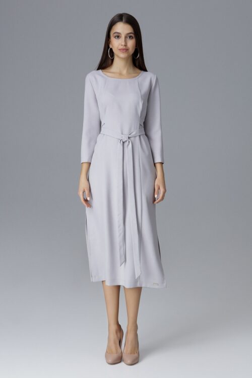 Elegant midi dress with asymmetrical basque and short sleeves – cornflower blue. Dress optically slims waist and hides the imperfections around the hips. Numoco brand. Polish product. Spandex 5 % Polyester 95 % Size Hips Chest Waist L 98 cm…