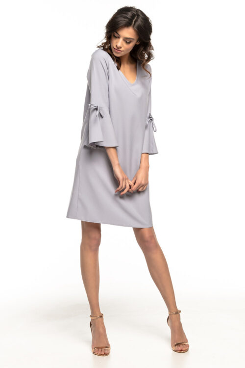 A simple, loose dress with a flirty frill at the sleeves and a subtle V neckline. This dress is our proposition for all those ladies who do not like tight-fitting dresses, but at the same time like to feel elegant.…