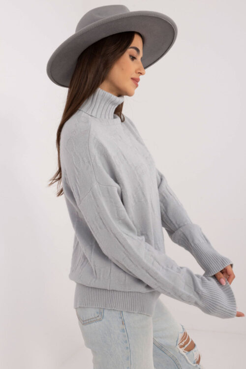 Ladies’ turtleneck sweater, perfect for everyday casual occasions. Made of material with a varied texture, which gives it a unique character. The dominant material is a blend of acrylic, polyester, and polyamide, which ensures durability and wearing comfort. The sweater…