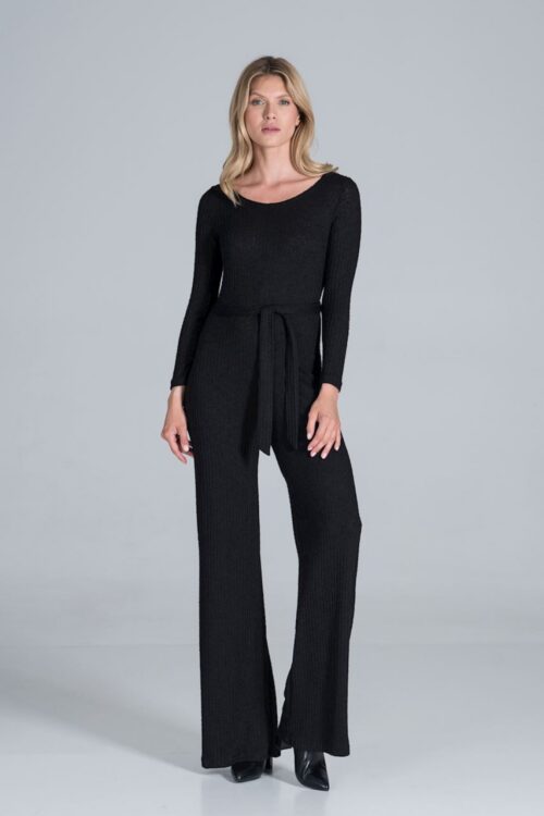 Ladies’ long-sleeved jumpsuit. Envelope front with a tie at the waist. Ideal for everyday and not only. Spandex 10 % Polyester 90 % Size Total length Chest one-size-fits-all 138 cm 92 cm