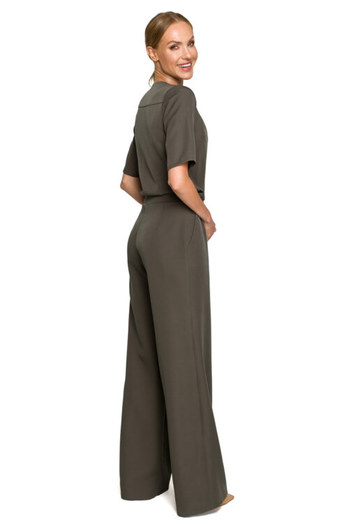 Extremely elegant and feminine jumpsuit is our latest proposition! It emphasizes the waist and lengthens legs thanks to straight legs. The back of the suit is closed with subtle buttons and gently exposes the back – perfect for an evening…