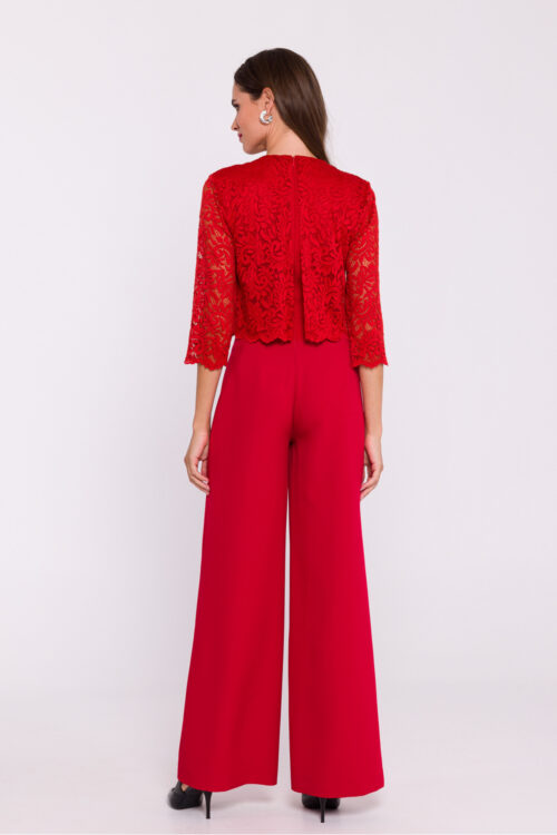 Elegant jumpsuit made of smooth fabric with a lace top is a unique combination of classic and chic. The top made of delicate lace gives it a romantic touch, while the short lace sleeves add lightness and subtle femininity. The…