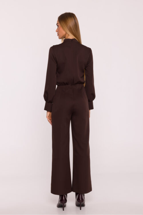 Stylish and feminine jumpsuit that combines comfort with elegance. Made of lightweight, flowing material, it will be perfect for warmer days. The model has long, puffy sleeves finished with a delicate elastic, which gives the whole a romantic character. The…