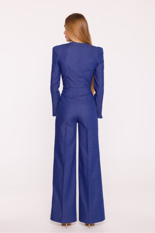 An elegant jumpsuit made of denim-like fabric is a unique proposal combining modern style with classic form. Slightly stiff, matte, and slightly elastic fabric beautifully holds the shape, and the lining (95% polyester, 5% elastane) ensures comfort and impeccable overall…