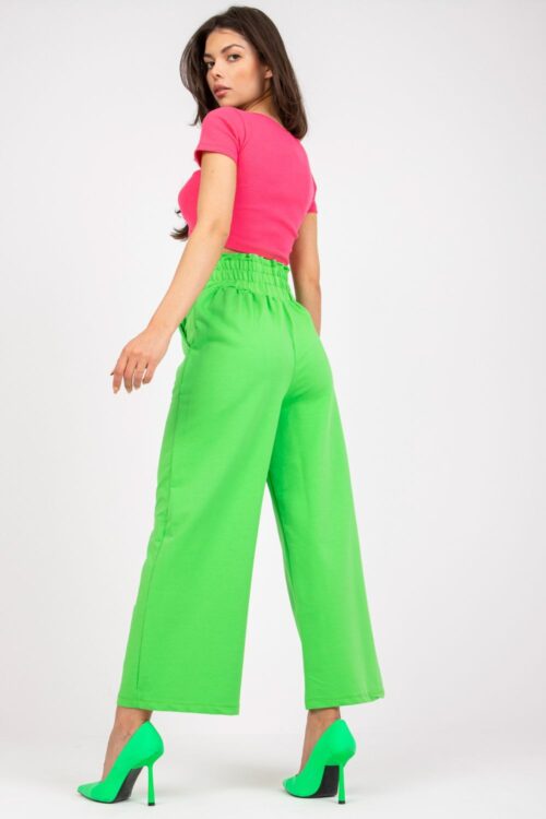 Sweatpants with high waist, wide legs, wide rubber band at the waist. Slip-on pockets on the sides. Cotton 65 % Spandex 35 % Size Hips width Waist width L/XL 102-106 cm 84-96 cm S/M 90-94 cm 72-86 cm