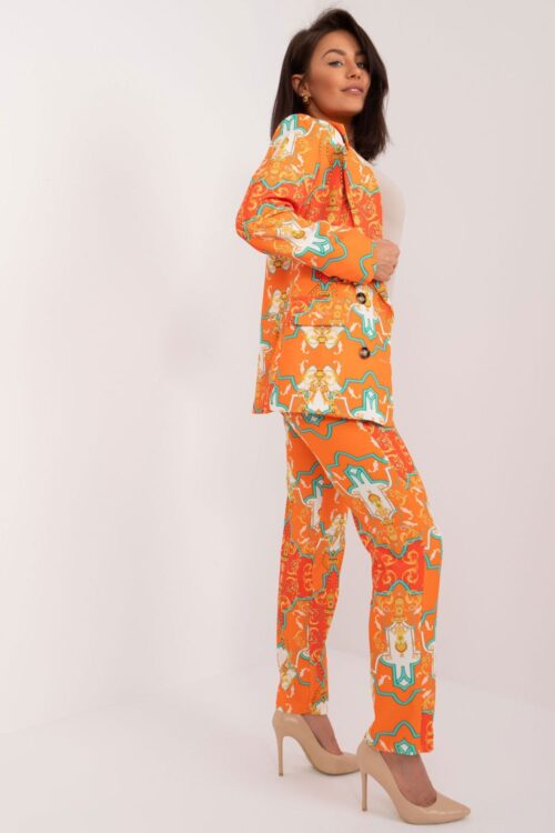 This elegant women’s set is ideal for a variety of occasions, from everyday wear at work to attending a party or business meeting. It consists of a long-sleeved jacket and long pants with a zipper and button closure. The jacket…