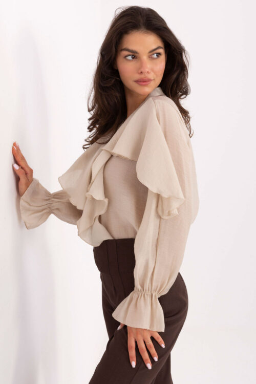 An elegant women’s blouse with ruffles on the front and a subtle jabot is the perfect choice for work, formal meetings, and everyday outings. Made of a high-quality blend of polyester, viscose, and elastane, it combines wearing comfort with material…