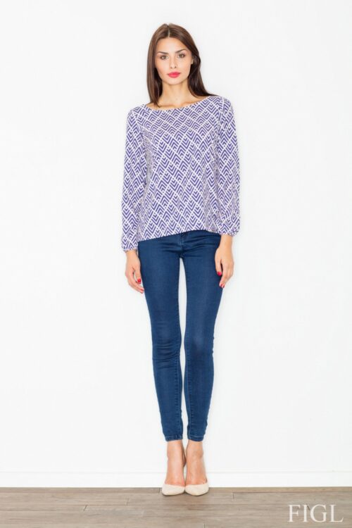 Blouse made of fabric in a delicate, geometric pattern with short sleeves. Perfect for many occasions. Size Chest L 93-96 cm M 89-92 cm S 85-88 cm XL 97-100 cm