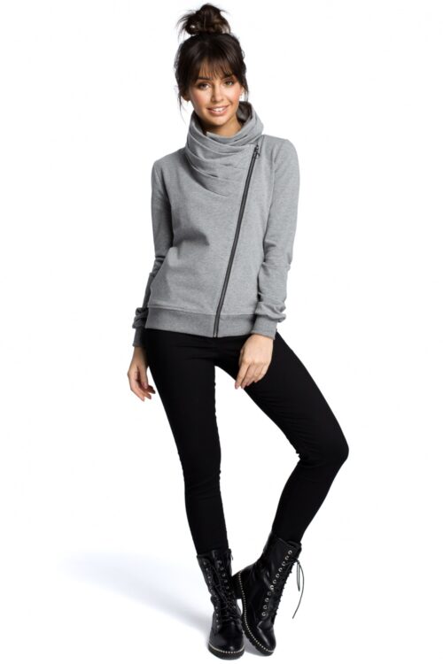 Ladies sweatshirt with a loose cut in grey. Hooded sweatshirt with zipper. Hooded sweatshirt perfect for many stylings. Cotton 95 % Spandex 5 % Size Chest L/XL 94-101 cm S/M 86-93 cm