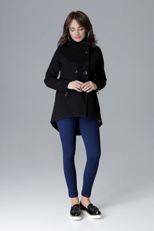 Fashionable jacket with a two-button placket. Collar with characteristic, quite high stand-up collar. Sleeves with zippers adding a modern style, longer back with a zipper, pockets in side seams. Jacket of universal, unconventional character. Polyester 80 % Viscose 20 %…
