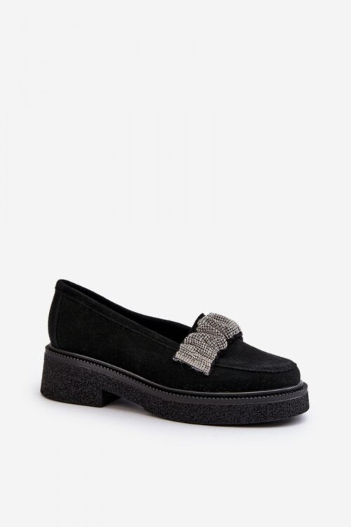 Women’s moccasins made of natural suede are a combination of elegance and comfort. The front of the shoe is decorated with a crinkled strap with small zircons. The contoured insole provides comfort and convenience while wearing, and the natural suede…