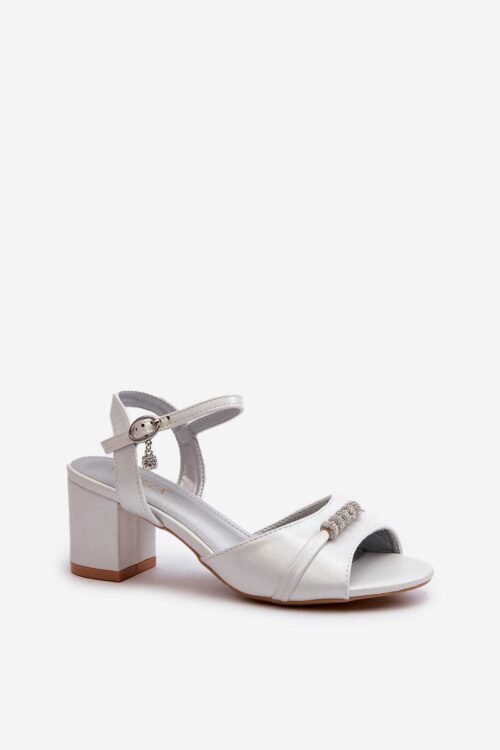 Elegant women’s sandals with embellishment. Set on a block heel. Fastened with an adjustable buckle strap. The soft, leather insole ensures comfort during wear. This model will definitely add shine to your outfit! fabric imitation leather suede Footbed natural leather…