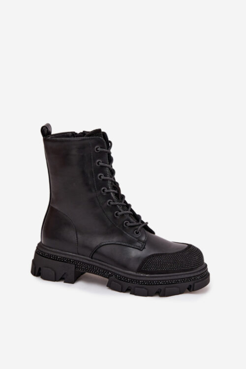 Stylish women’s work boots made of high-quality eco leather, which attract attention thanks to the fancy decoration with shimmering stones. The model has classic lacing combined with a practical zipper closure, which makes it easier to put on and adjust…