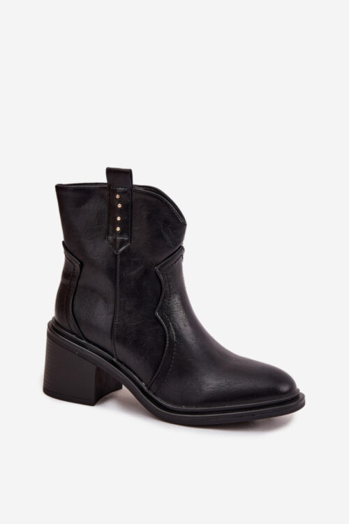 Women’s cowboy-style ankle boots, made of eco leather, are a proposal for women who appreciate the combination of comfort and fashionable look. The model is set on a massive, stable heel, which adds height to the silhouette, while providing comfort…