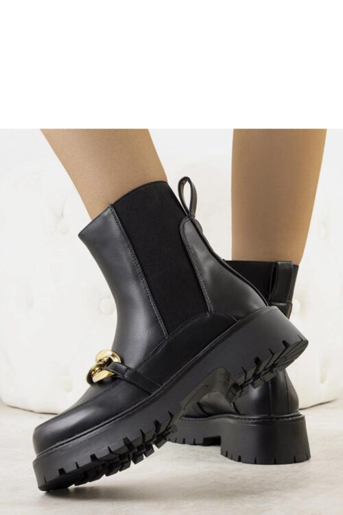 Harrison ankle boots are the perfect footwear for cold autumn-winter days. Made of eco-leather, they not only ensure a stylish look, but also comfort. Decorative gold chains add elegance and character to them. The high trekking sole is a hit…
