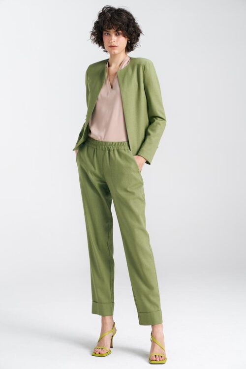An elegant women’s material vest is a stylish wardrobe element that will work perfectly for everyday wear, work, and formal occasions. Its striped pattern adds a modern, slimming effect and makes the vest look great with both elegant trousers and a skirt. The model is made of high-quality blend of nylon, polyester, elastane, and viscose, making the vest comfortable, well-fitting on the silhouette, and maintaining its shape. The standard length ensures a classic, timeless look, and the sleeveless design adds lightness and allows for creating many stylish combinations. The classic button fastening emphasizes the elegant character of the model, and the inner lining increases wearing comfort and indicates careful finishing. This is a vest that will successfully complement both office and more formal stylizations, adding elegance and character to them.