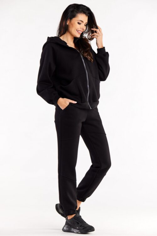 Sweatpants made of knitted fabric with an addition of black mesh uncovering some parts of the body. Pants with M237 blouse create a tracksuit set. The mesh inserts give it a unique character. Designed and sewn in Poland. Cotton 92…