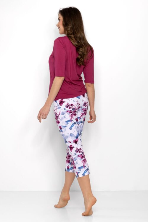 Women’s 2-piece pajama designed with comfort and delicate, feminine style in mind. The blouse with 3/4 sleeves and a round neckline provides freedom of movement, and the decorative finish of the sleeves with lace adds subtle elegance. The 7/8 length…