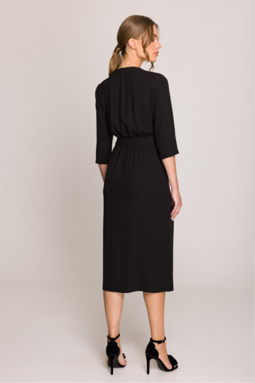 A-line dress that subtly emphasizes the silhouette, while maintaining an elegant and comfortable character. Made of high-quality fabric, providing comfort throughout the day. Knee-length gives it versatility, making it ideal for both everyday wear and more formal occasions. 3/4 sleeves…