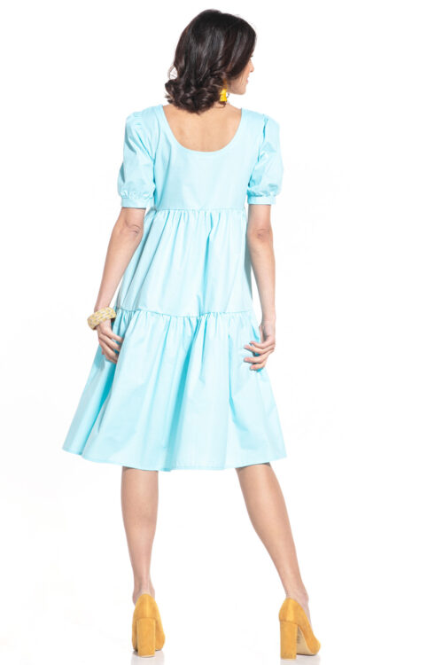 Midi dress with a boat neckline and short buffet sleeves. Cotton 100 % Size Total length Chest L 106 cm 102 cm M 105 cm 98 cm S 104 cm 94 cm XL 107 cm 106 cm XS 103 cm…