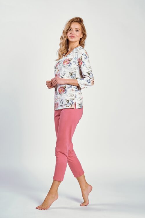Women’s pajamas ideal for all seasons, consisting of a 3/4-sleeve blouse and 7/8-length pants. The blouse has a loose, comfortable fit and side slits at the bottom for freedom of movement and a stylish look. Made of soft and breathable…