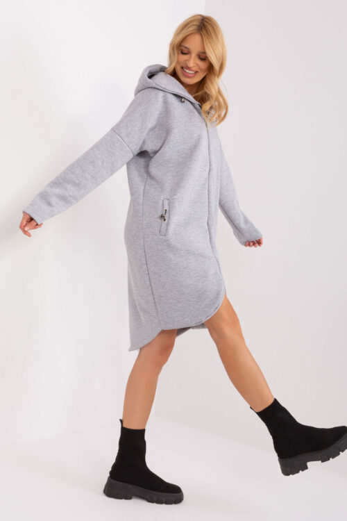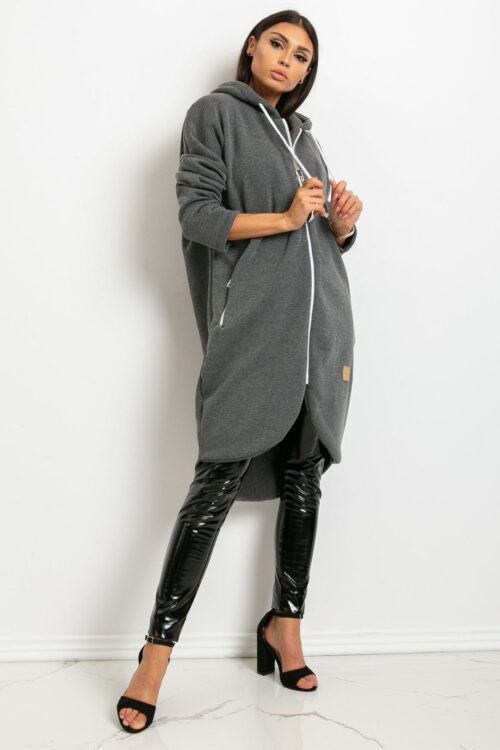 Women’s sweatshirt with an extended cut, long sleeves and a hood. The sweatshirt is zippered, with slip pockets on the sides also zippered. Cotton 90 % Spandex 10 % Size Sleeve internal lenght Sleeve external lenght Chest L/XL 53-55 cm…