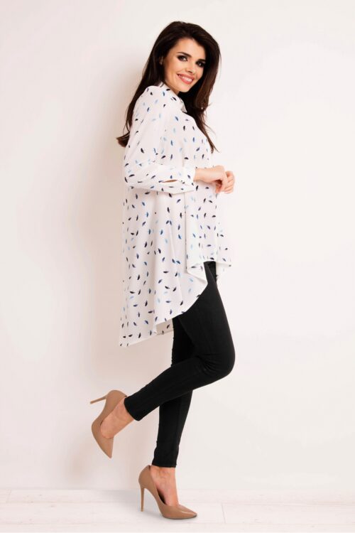 Ladies’ shirt of loose cut with long sleeves. Shirt with extended back, with collar. Perfect for many occasions. Spandex 2 % Polyester 98 % Size Chest 36 86-89 cm 38 90-93 cm 40 94-97 cm 42 98-101 cm