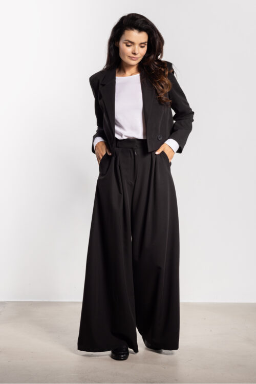 Stylish wide-leg pants combine comfort with elegance. The high waist emphasizes the waist and visually lengthens the silhouette, while the flared legs add lightness and a modern character. The model will work well in both everyday stylizations and office or…