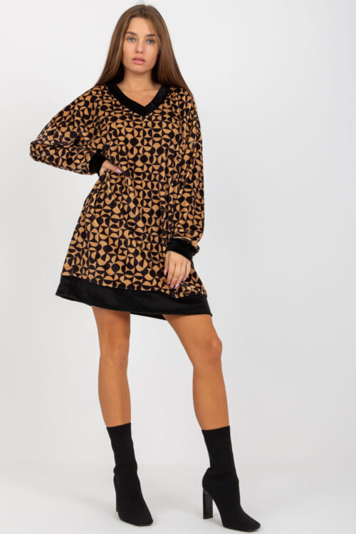 Velour dress with long sleeves and decorative creases. A perfect choice for many occasions. Spandex 5 % Polyester 95 % Size Chest Waist L/XL 91-96 cm 84-96 cm S/M 82-86 cm 72-86 cm