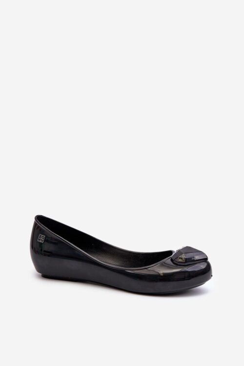 Classic women’s ballerinas have a decoration on the front. They were made of eco leather. A soft insole will ensure comfortable use of the shoes. These shoes are set on a flat heel. This model has a pointed nose, which…