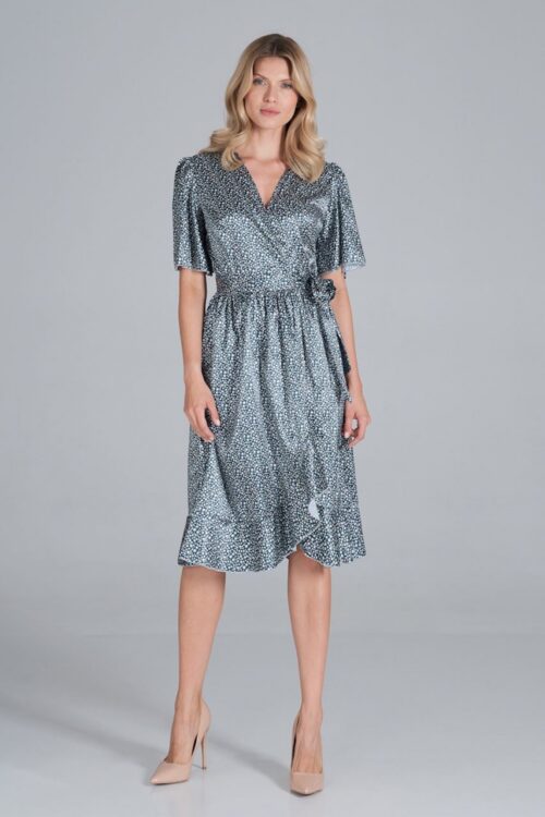 Mini dress with envelope neckline and short sleeves is made of very good quality fabric that will be comfortable to wear. The short dress is characterized by short ruffled sleeves and creases along the torso. The dress is also distinguished…