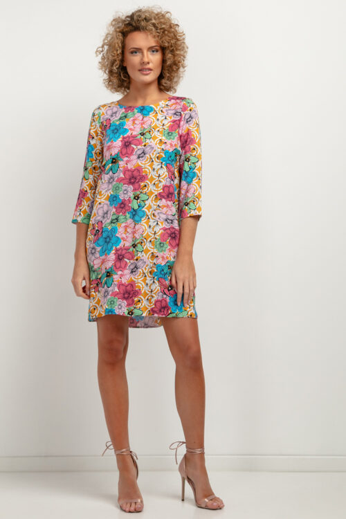 The beautiful dress is a great option for both elegant and everyday styling. The top of the dress has a loose cut, kimono type and a slightly flared hem with a length before the knee. Beautiful floral patterns and a…