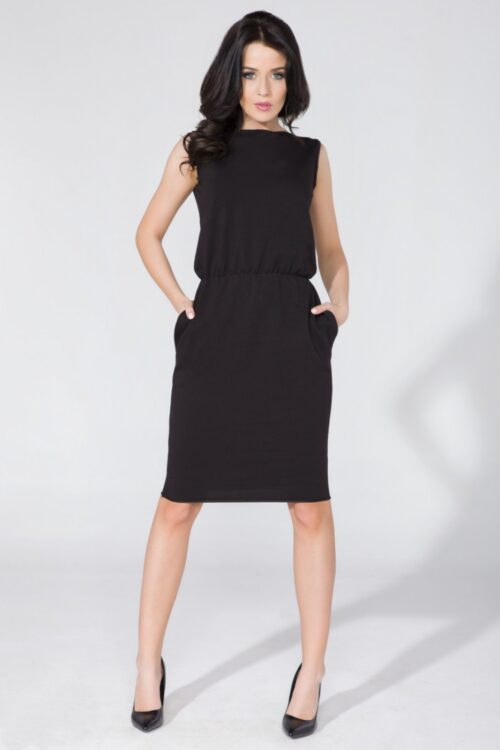 A classic elegant dress of the little black dress type. French cuts and a cut at the waist add lightness to it. It will also go well with a belt at the waist. The fabric is knitted, slightly elastic. No…