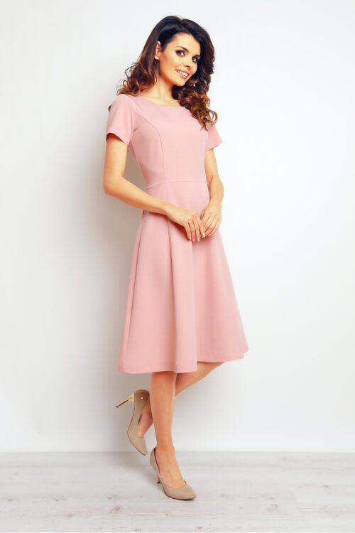 Elegant and classic dress, made of high quality material ensuring comfort and convenience. Fitted top and slightly flared bottom. A half-round neckline. Ideal for family celebrations and meetings with friends.Material composition: 60% polyester, 35% viscose, 5% elastane. Size Hips Chest…