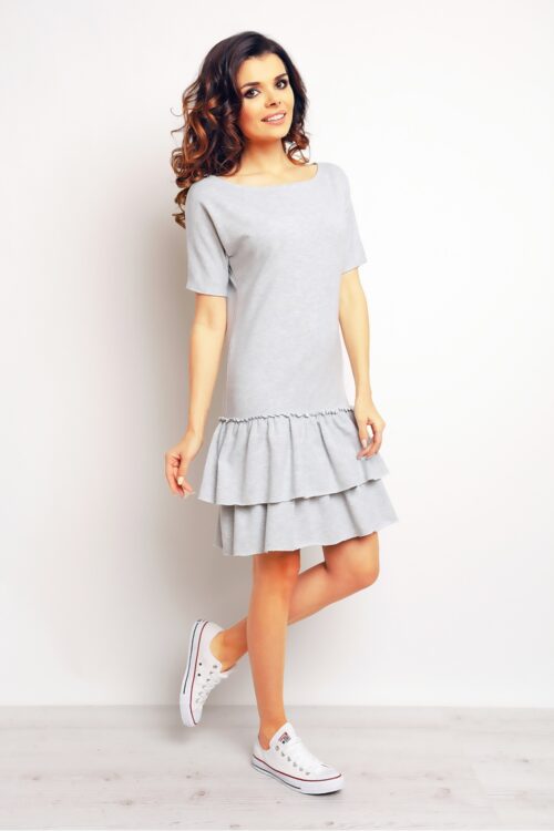 Comfortable dress in a casual style, made of high quality cotton. Fitted top, decorated with two rows of frills at the bottom for added charm. Cut will look good with sneakers as well as with more elegant ballerina shoes. Dress…
