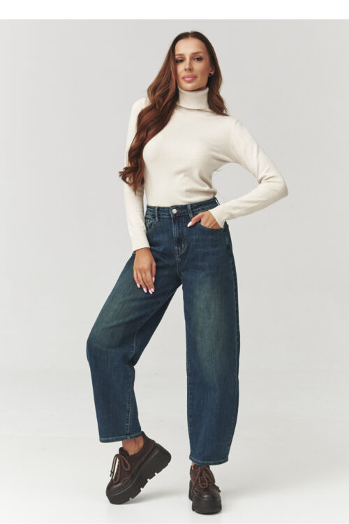 Women’s sweater with a loose fit is an ideal choice for colder days. The model has a high permanent roll-up turtleneck, which will further wrap and provide warmth. The material is soft and cozy. The sweater has reglan sleeves, which…