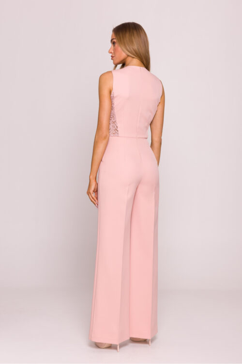 Unique jumpsuit that combines classic elegance and subtle sensuality. Made of smooth, pleasant to the touch fabric, enriched with geometric lace panels on the sides, which beautifully shape the silhouette and add lightness to the whole. The fitted top with…