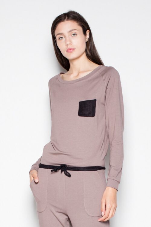 Long legs and envelope top with side pockets. A perfect styling for many occasions. Comes with a belt. A delicate, sensual neckline adds style. This suit suits every figure and its cut hides all the imperfections.