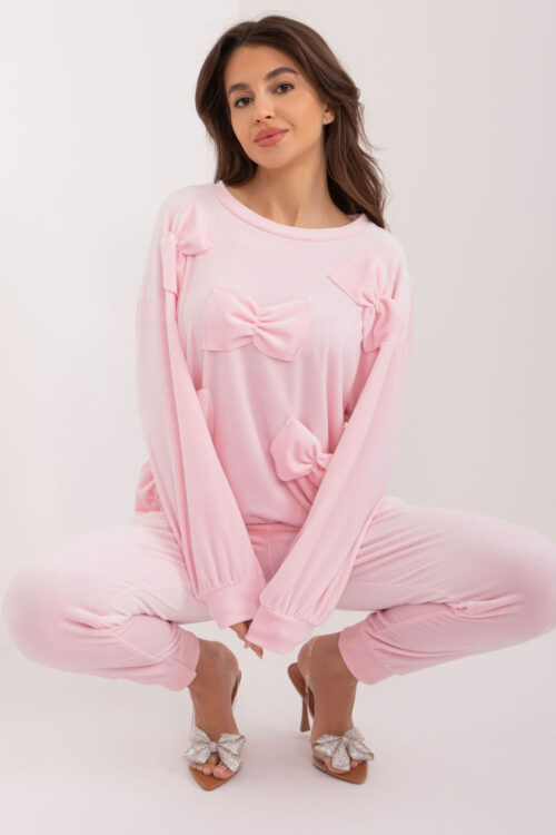 Immerse yourself in comfortable luxury with our unique velour set, consisting of an elegant sweatshirt and pants. This set not only impresses with its cozy velour fabric, but also adds a stylish touch with decorative bows placed on the front…