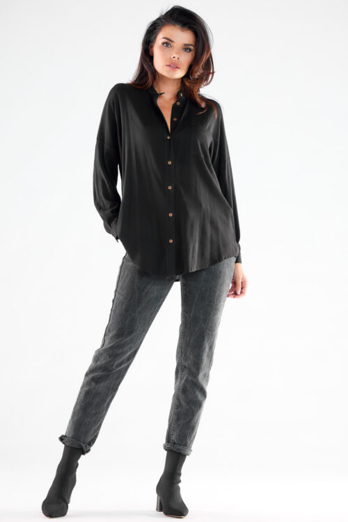 Elegant stand-up shirt with long sleeves. The shirt has an extended back and is buttoned. Perfect for a business meeting and everyday wear. Product designed and sewn in Poland. Spandex 3 % Viscose 97 % Size Total length Chest L/XL…