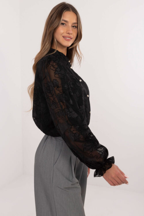 Oversize chiffon shirt with wide and ruffled sleeves at the cuff, fastened with transparent buttons. Polyester 100 % Size Total length Chest one-size-fits-all 78 cm 146 cm