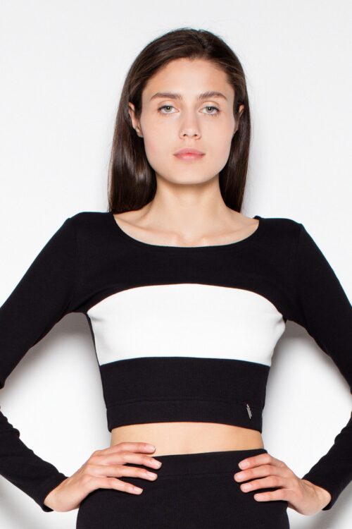 Ladies’ set made of striped material is a combination of comfort and modern style in everyday wear. The set includes a short blouse with long sleeves and a round neckline, fastened with a zipper, and a fitted skirt with a…