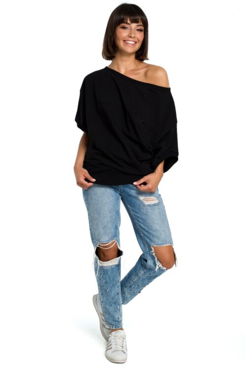 Oversized sweatshirt made of soft knitwear of ribbed weave with an interesting accent worn underneath and finished with a ribbed hem. To jeans or leggings, a perfect choice for every day. Cotton 90 % Spandex 10 % Size Total length…