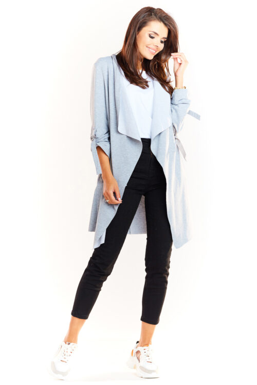 A knitted sweatshirt of trench type. Made of knitted sweatshirt. Sweatshirt adheres loosely to the body. Decorative drawstring at waist allows to fit the figure. Put on a T-shirt and jeans and create a fashionable, timeless look.Designed and sewn in…