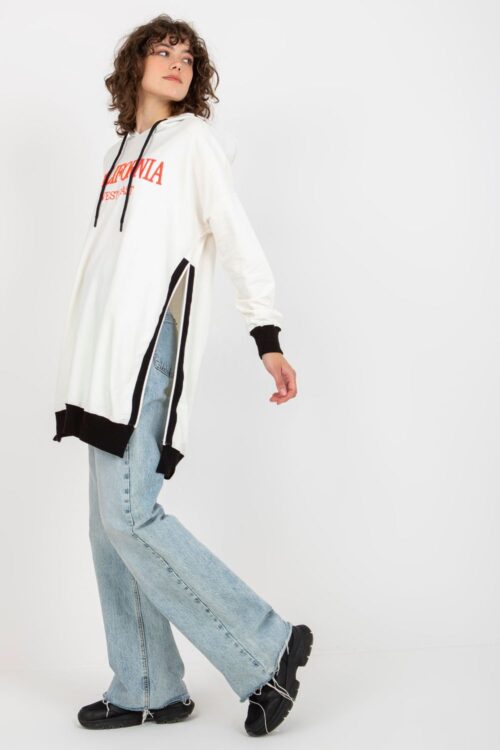 A long women’s casual sweatshirt is a combination of comfort and stylish design. It stands out with a dominant print on the front, decorated with trendy jet stones, which give it a unique character and subtle shine. The sweatshirt is…