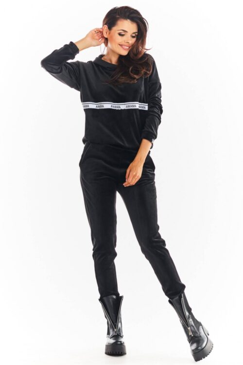 Warm sweatshirt, made of pleasant to the touch velour, which is resistant to creasing. Its loose fit does not restrict movement and is ideal for everyday use. There is a functional kangaroo pocket on the front and a decorative tape…